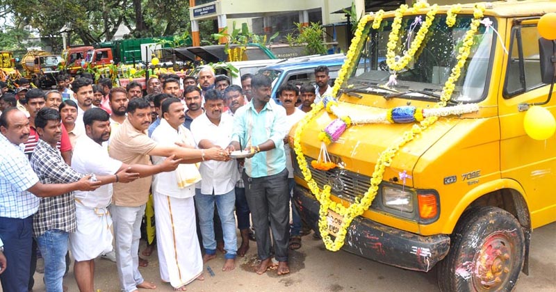 ನಗರಸಭೆ ವಾಹನಗಳಿಗೆ ಆಯುಧಪೂಜೆ