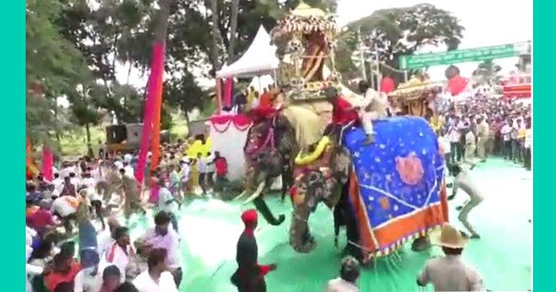 ಶ್ರೀರಂಗಪಟ್ಟಣದಲ್ಲಿ ದಸರಾ ಹಬ್ಬದಲ್ಲಿ ಪಾಲ್ಗೊಂಡು ಅಂಬಾರಿ ಹೊತ್ತು ಜಂಬೂಸವಾರಿ ಹೊರಟಿದ್ದ ಗೋಪಾಲಸ್ವಾಮಿ ಹೆಸರಿನ ಆನೆ ನಾಡದೇವಿಗೆ ಪುಷ್ಪಾರ್ಚನೆ ನಡೆದ ಬಳಿ ಪಟಾಕಿ, ವಾದ್ಯದ ಸದ್ದಿಗೆ ಬೆದರಿದೆ. ಶ್ರೀರಂಗಪಟ್ಟಣದ ಬನ್ನಿಮಂಟಪ ಬಳಿ ಈ ಘಟನೆ ನಡೆದಿದ್ದು, ಆನೆ ಗಾಬರಿಗೊಂಡು ಒಂದು ಸುತ್ತು ತಿರುಗಿದೆ. ಆನೆ ಬೆದರುತ್ತಿದ್ದಂತೆ ಜನರು ಚೆಲ್ಲಾಪಿಲ್ಲಿಯಾಗಿ ಓಡಿದ್ದಾರೆ. ನಂತರ ವಾದ್ಯ, ಧ್ವನಿವರ್ಧಕಗಳನ್ನು ಸ್ಥಗಿತಗೊಳಿಸಲಾಯಿತು ಬಳಿಕ ಆನೆ ಸಮಾಧಾನಗೊಂಡಿದೆ.
