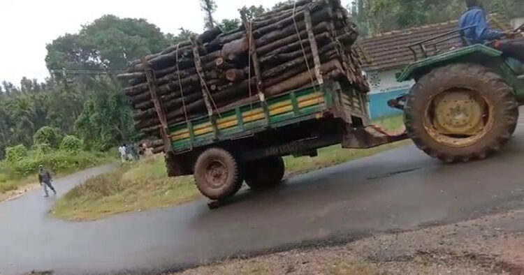 ಮರ ತುಂಬಿದ ಟ್ರ್ಯಾಕ್ಟರ್ ಪಲ್ಟಿ: ದುರಂತ ಪಾರು