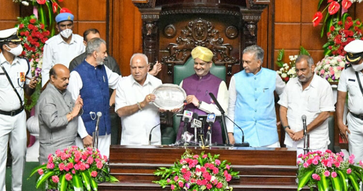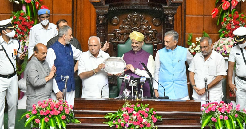 ಬೆಂಗಳೂರು: ಲೋಕಸಭಾ ಸ್ಪೀಕರ್ ಓಂ ಬಿರ್ಲಾ ಅವರು ವಿಧಾನಸಭೆ ಮತ್ತು ವಿಧಾನ ಪರಿಷತ್ತಿನ ಜಂಟಿ ಅಧಿವೇಶನದಲ್ಲಿ ಮಾಜಿ ಮುಖ್ಯಮಂತ್ರಿ ಬಿ.ಎಸ್. ಯಡಿಯೂರಪ್ಪ ಅವರಿಗೆ ಅತ್ಯುತ್ತಮ ಶಾಸಕ ಪ್ರಶಸ್ತಿಯನ್ನು ನೀಡಿ ಗೌರವಿಸಿದರು.