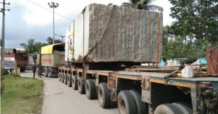 Tags: 100 ton stone arrives at Rambhapuri bench