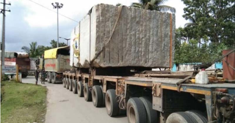 Tags: 100 ton stone arrives at Rambhapuri bench