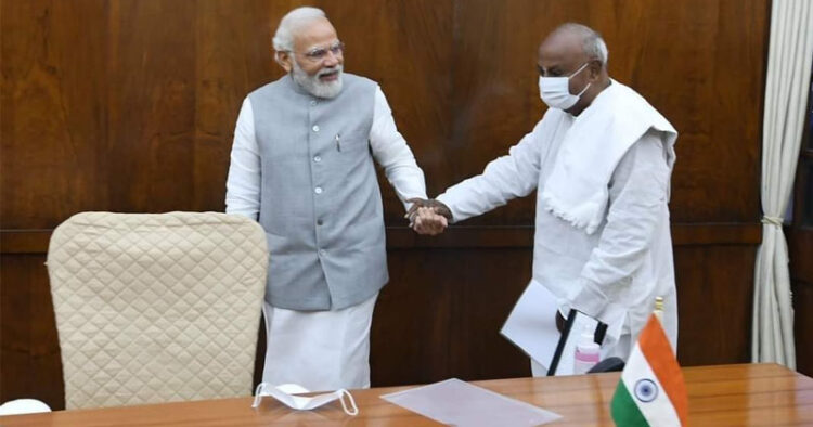 HD Deve Gowda meets Prime Minister Narendra Modi