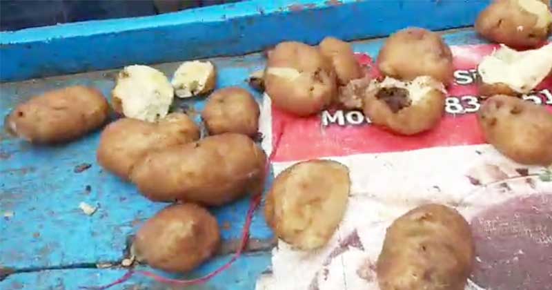 ನಗರದ ಮಾರ್ಕೆಟ್ ರಸ್ತೆ, ಎಂಜಿ ರಸ್ತೆ, ಷರೀಷ್ಗಲ್ಲಿ ಸೇರಿದಂತೆ ಹಲವೆಡೆ ರಸ್ತೆ ಬದಿಯಲ್ಲಿ ಮಡಿಕೆಯಲ್ಲಿ ಮಾರಾಟ ಮಾಡುತ್ತಿದ್ದವರ ಬಳಿ ಬುಧವಾರ ಪಾನಿಪೂರಿ ತಿಂದ ಕೆಲವು ಯುವಕರಿಗೆ ಅಲ್ಲಿದ್ದ ಆಲೂಗೆಡ್ಡೆ ಕಂಡು ಅನುಮಾನ ಬಂದು ಪರಿಶೀಲಿಸಿದಾಗ ಕೊಳೆತ ಮತ್ತು ಹುಳವಿದ್ದ ಗೆಡ್ಡೆ ಪತ್ತೆಯಾಗಿದೆ.