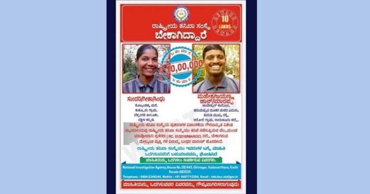 ಚಿಕ್ಕಮಗಳೂರು : ನಕ್ಸಲ್ ಚಟುವಟಿಕೆಗಳಲ್ಲಿ ಭಾಗಿಯಾಗಿ ಇಬ್ಬರು ವ್ಯಕ್ತಿಗಳು ತಲೆಮರೆಸಿಕೊಂಡಿದ್ದು ಅವರ ಸುಳಿವು ನೀಡಿದ್ದಲ್ಲಿ ತಲಾ ಹತ್ತು ಲಕ್ಷ ರೂಪಾಯಿ ನಗದು ಬಹುಮಾನ ನೀಡುವುದಾಗಿ ರಾಷ್ಟ್ರೀಯ ತನಿಖಾ ಸಂಸ್ಥೆಯು ಘೋಷಣೆ ಮಾಡಿದೆ.