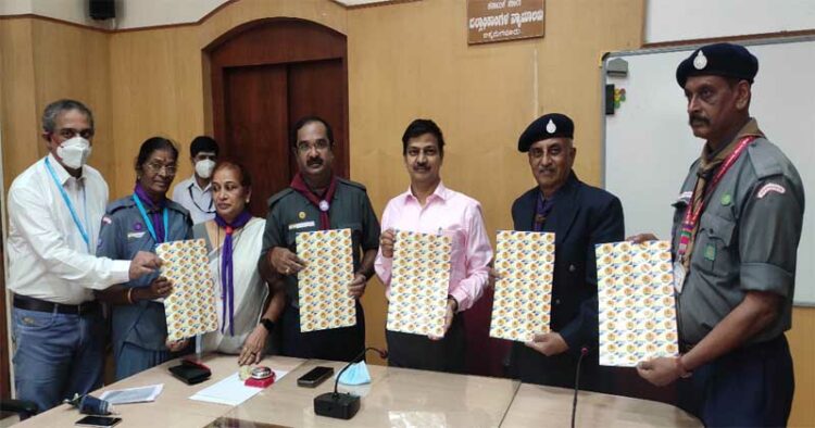 ಚಿಕ್ಕಮಗಳೂರು: ಭಾರತ ಸ್ಕೌಟ್ಸ್ ಮತ್ತು ಗೈಡ್ಸ್ ಸಂಸ್ಥಾಪನಾ ದಿನಾಚರಣೆ ಅಂಗವಾಗಿ ಭಾರತ ಸ್ಕೌಟ್ಸ್ ಮತ್ತು ಗೈಡ್ಸ್ ಸಪ್ತಾಹದ ಧ್ವಜ ಚೀಟಿಗಳನ್ನು ಮಂಗಳವಾರ ಜಿಲ್ಲಾಧಿಕಾರಿ ಕೆ.ಎನ್. ರಮೇಶ್ ತಮ್ಮ ಕಛೇರಿಯಲ್ಲಿ ಬಿಡುಗಡೆಗೊಳಿಸಿದರು.